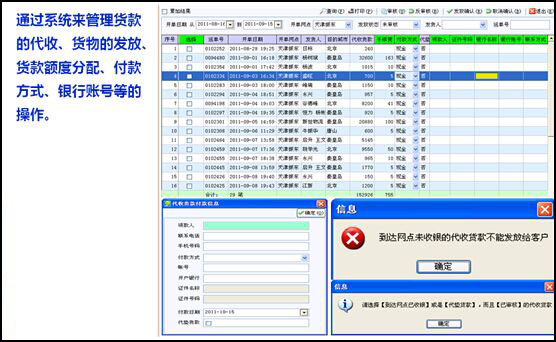 根据不同的货物类型,提供不同的运输服务,能实现多网点联合运营